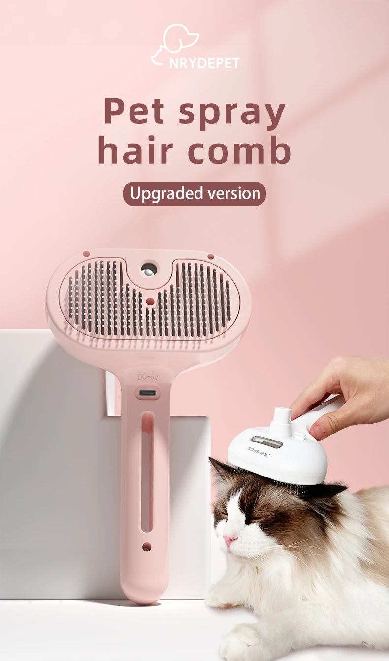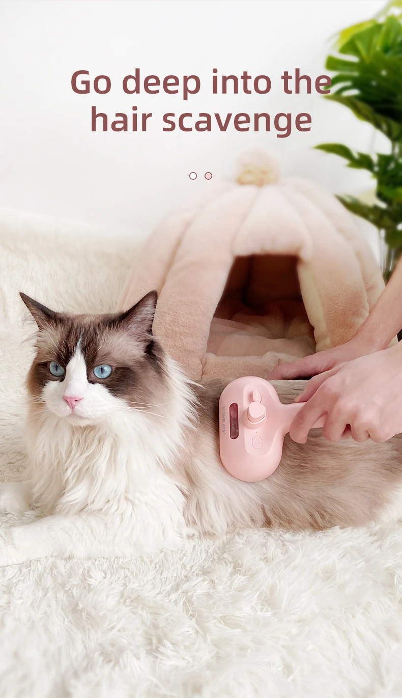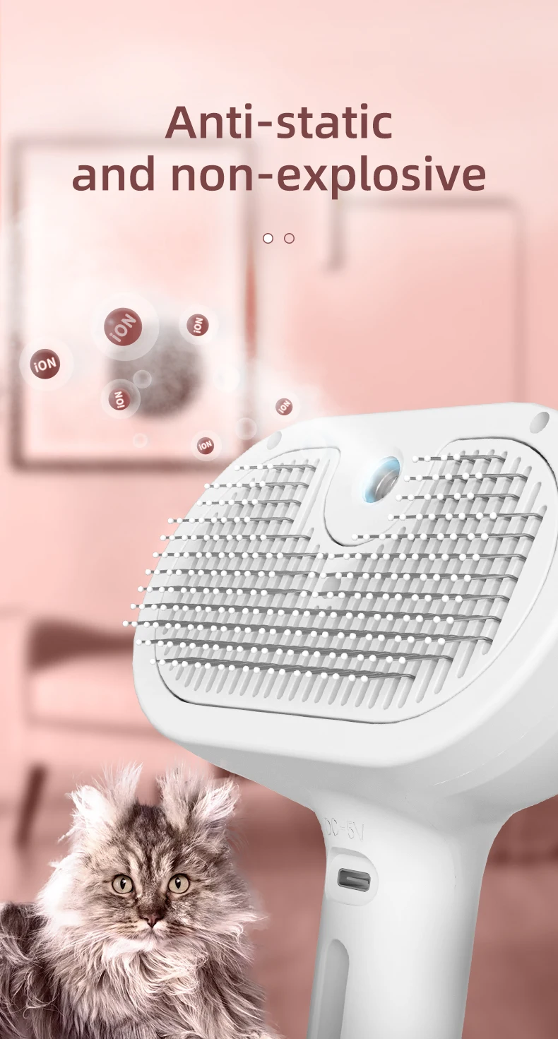 Wet steamy grooming brush for cats and dogs with built-in water tank to reduce static and loose hair. Gentle, effective, and customizable—ideal for wholesale supply, bulk orders, and private-label pet brands.