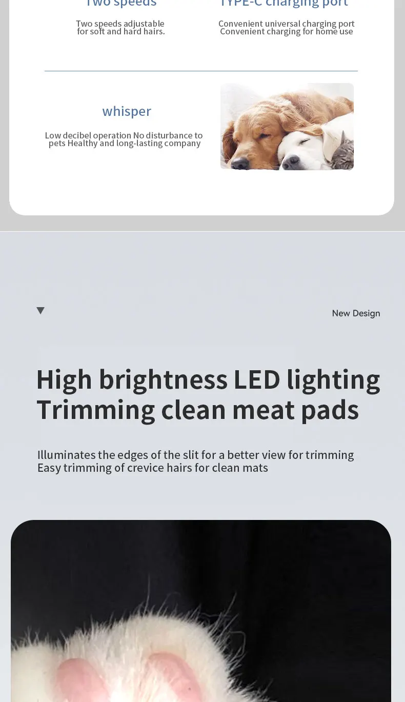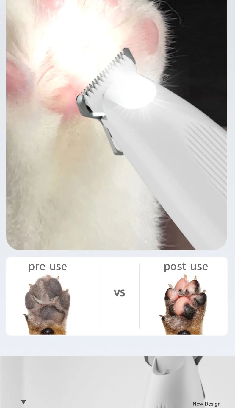The cordless rechargeable design ensures easy handling and flexible movement, while the built-in LED light improves visibility for accurate trimming in hard-to-see areas. Engineered with sharp, skin-safe blades, the trimmer delivers smooth and controlled cuts without pulling hair. OEM & private-label customization is available, including logo branding, body color, packaging, and accessory configuration, making this product suitable for pet retailers, distributors, grooming brands, and private-label suppliers.